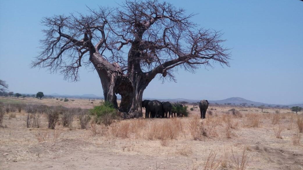 The safari jeep pulls over near a giant tree. Everyone gets out to stretch and grab a snack. The kids wander around, curious and full of energy. Parents enjoy the shade and take a few photos. It’s a short break before the next part of the drive. The air is warm, the view wide and wild. A few birds call from the branches above. Then it’s back into the jeep